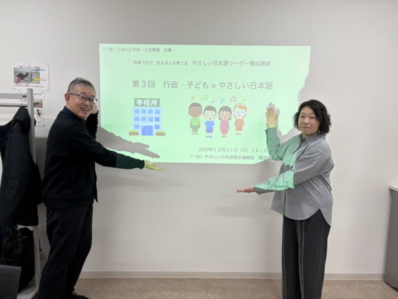 また、やさしい⽇本語の講演会、⼩学校・中学校・⾼等学校の先⽣⽅対象の研修、地域⽇本語学習⽀援活動の研修依頼も募集しております。